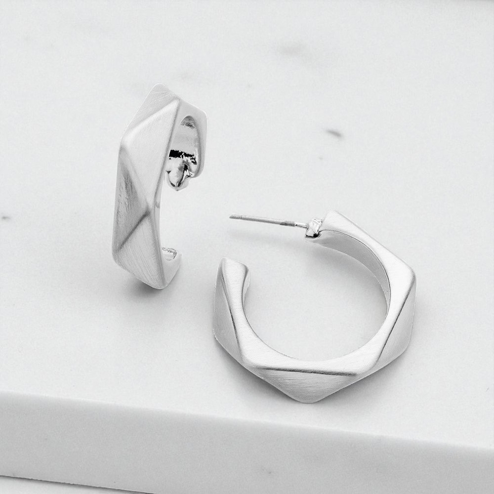 Angled Metal Hoop Earrings