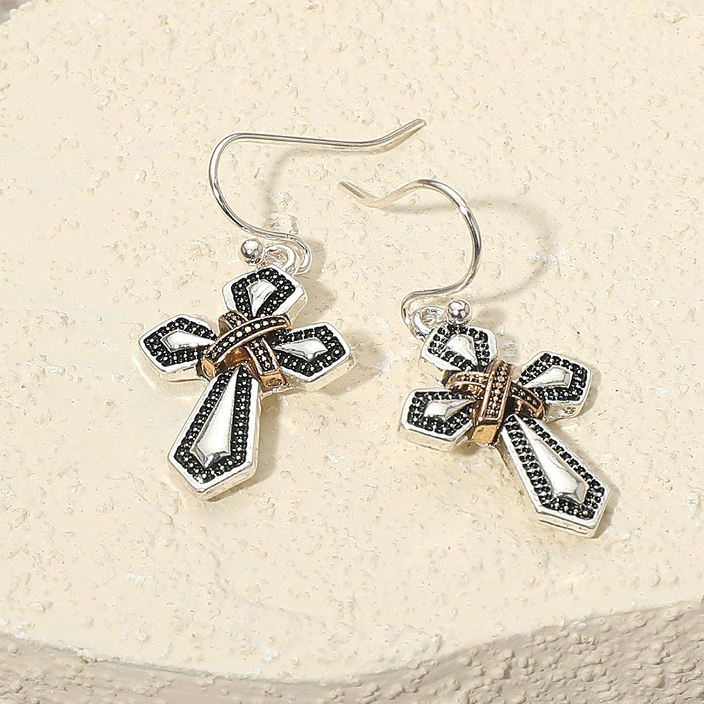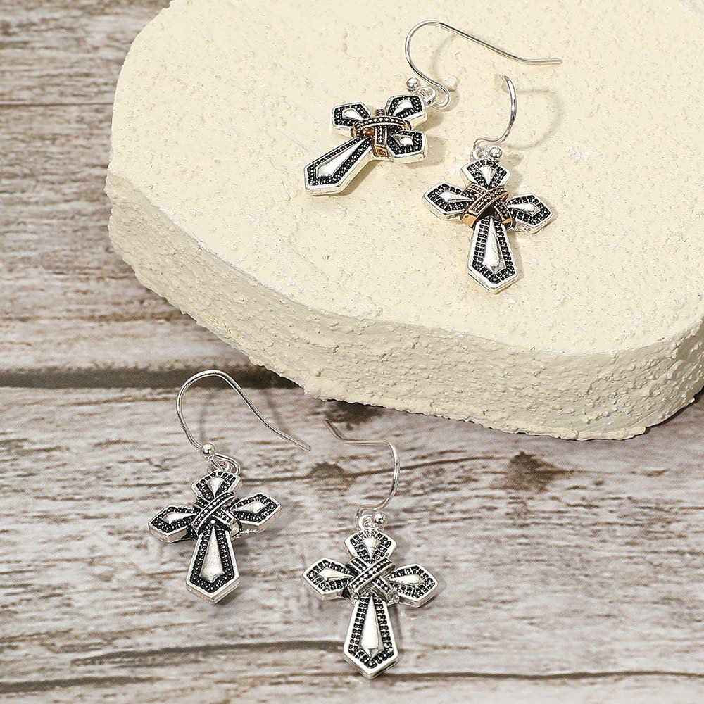 Details • Size : 0.6" X 1.3" • Fish Hook Back • Complete your look with these antique-style cross drop earrings featuring intricate vintage detailing. Lightweight and versatile, they bring a touch of faith-inspired elegance and timeless charm, perfect for daily wear or adding meaningful style to special occasion outfits. • Lead and Nickel Compliant