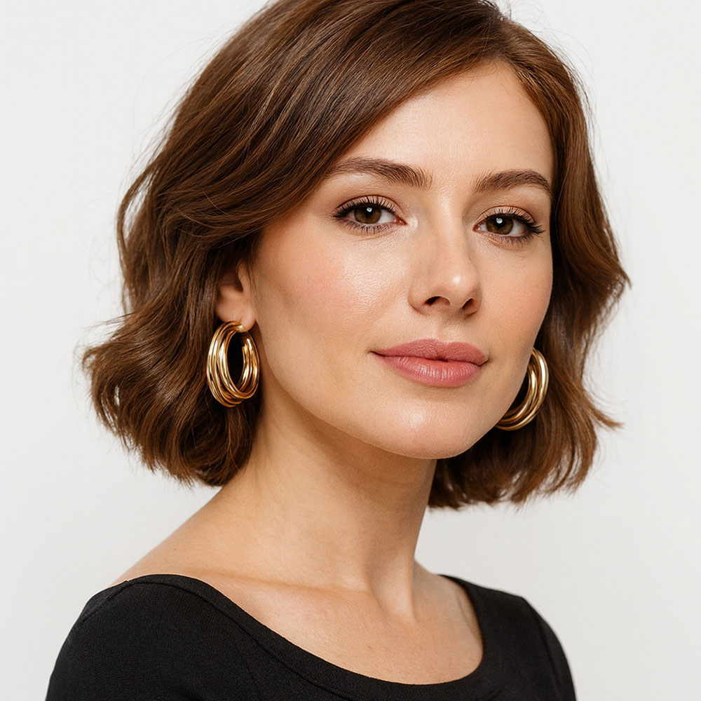• Sculpted layered hoop earrings with a bold, modern silhouette that instantly elevates any look. Designed to feel lightweight and comfortable for extended wear, these versatile statement earrings transition easily from daytime styling to evening outfits.