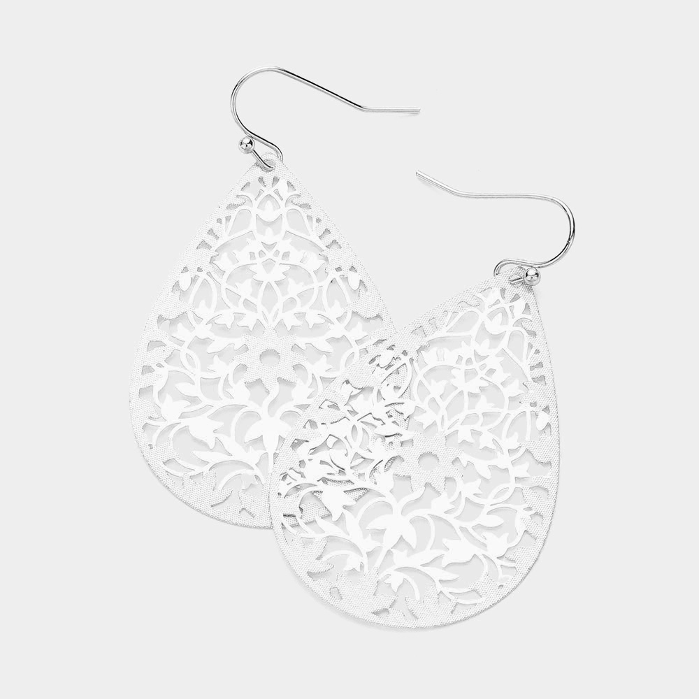 Metal Filigree Teardrop Dangle Earrings