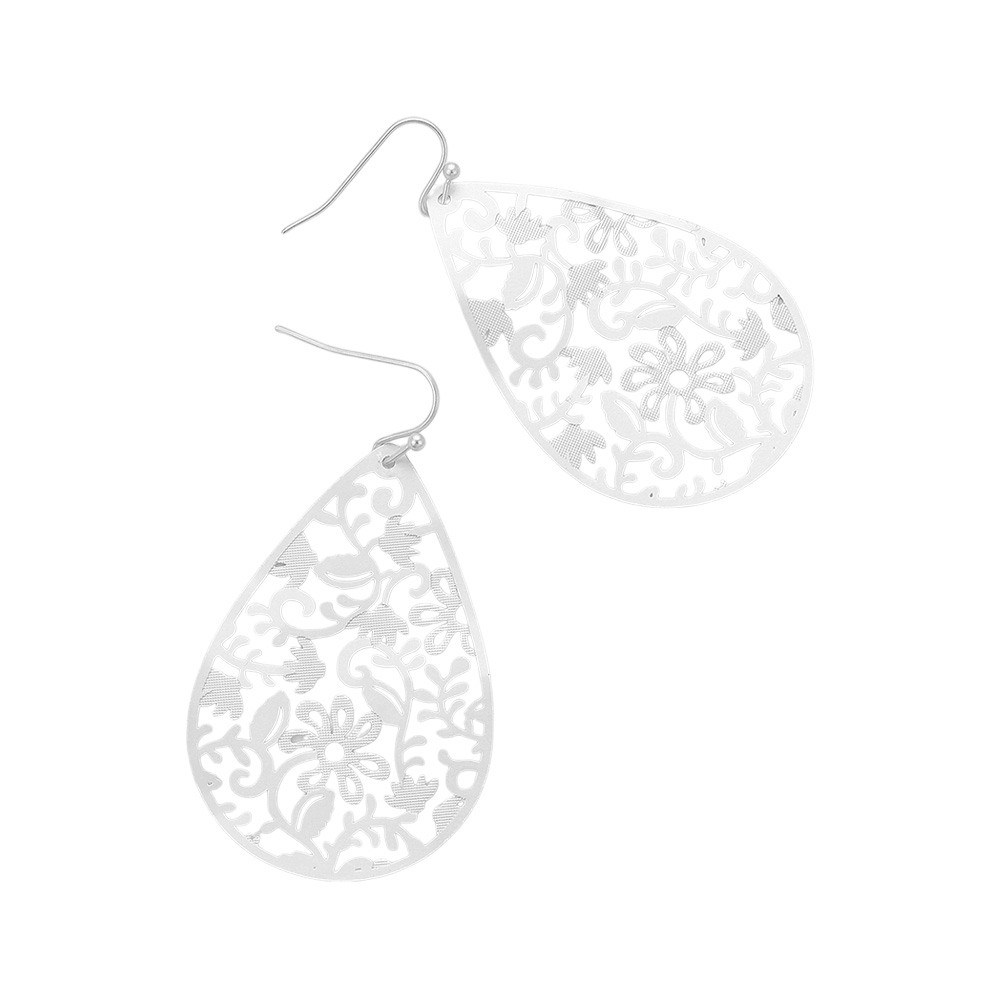 Filigree Metal Teardrop Layered Dropdown Dangle Earrings