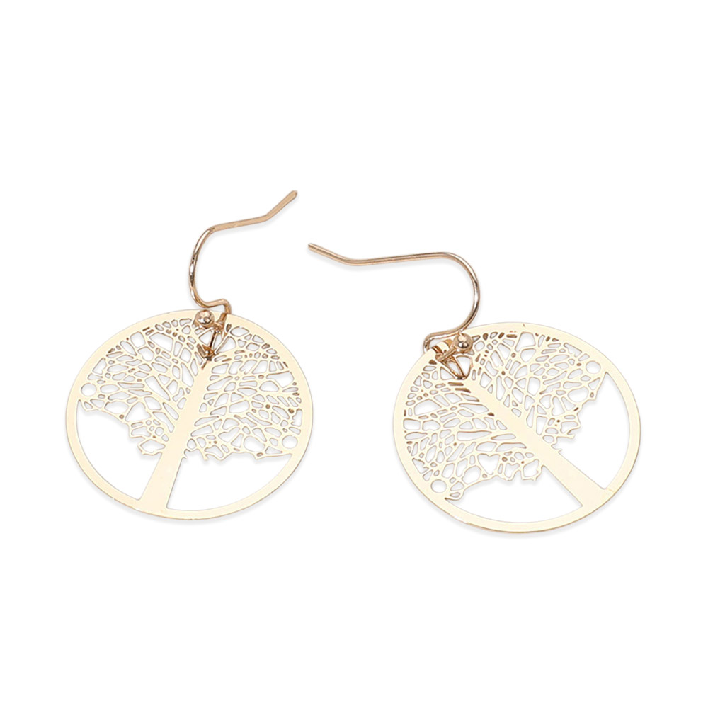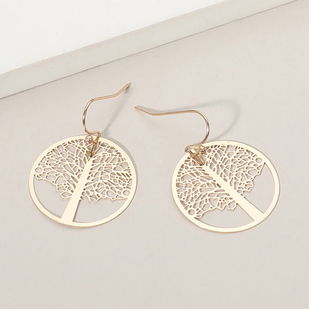 Brass Matte Metal Tree of Life Filigree Dangle Earrings