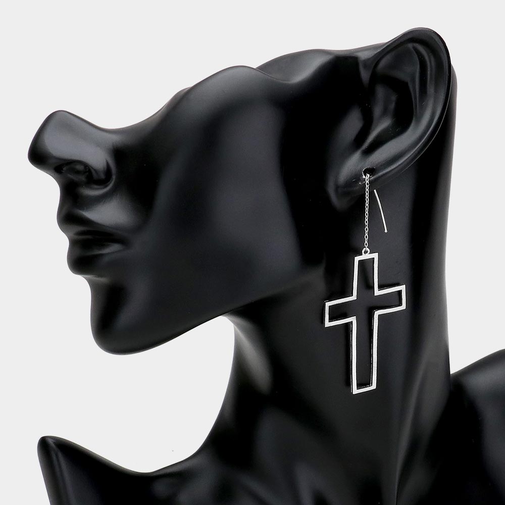 Stainless Steel Stone Paved Cross Tip Cuff Bracelet