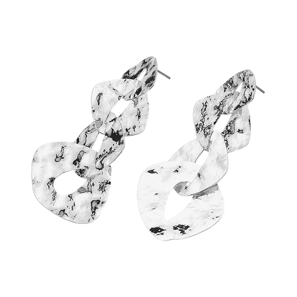 Chunky Hammered Metal Plate Link Drop Earrings