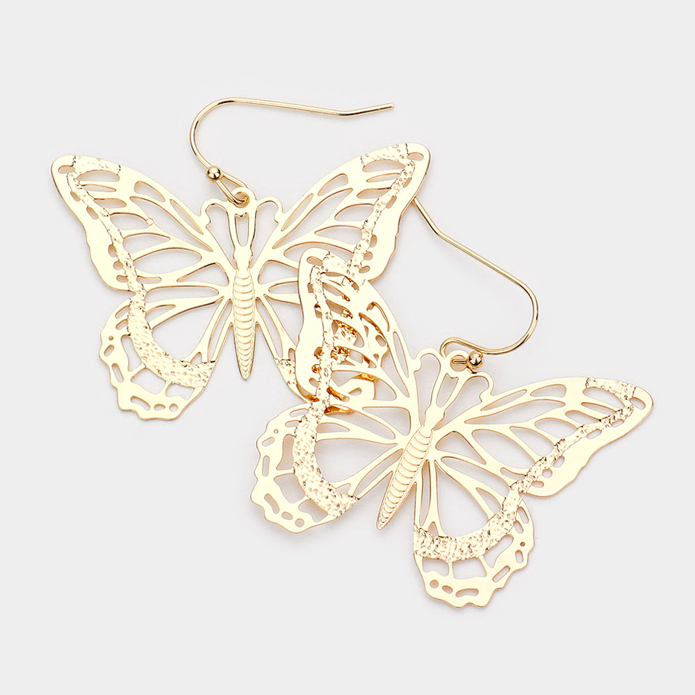 Cut Out Brass Metal Butterfly Dangle Earrings