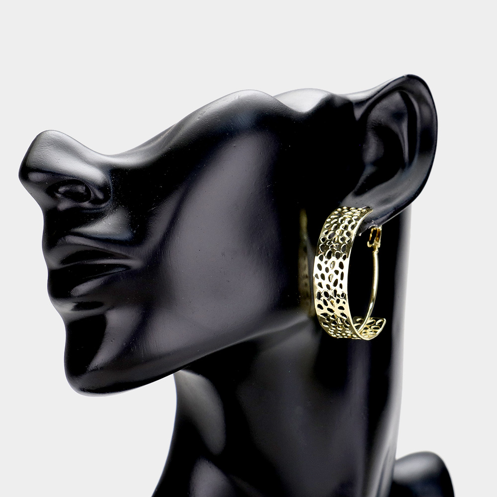 2.7" Gold Dipped Textured Aluminum Pin Catch Hoop Earrings