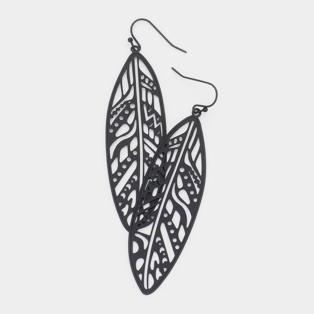 Brass Matte Metal Filigree Teardrop Dangle Earrings