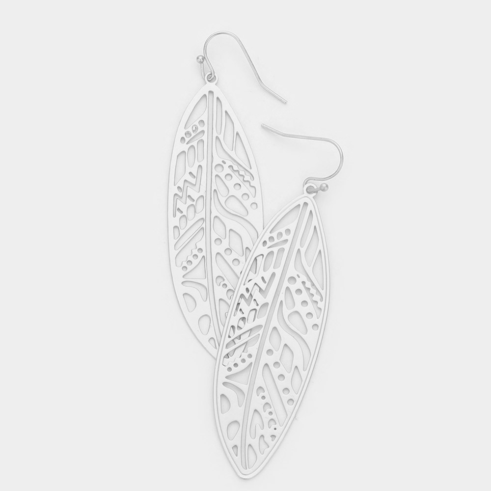Metal Leaf Filigree Teardrop Dangle Earrings