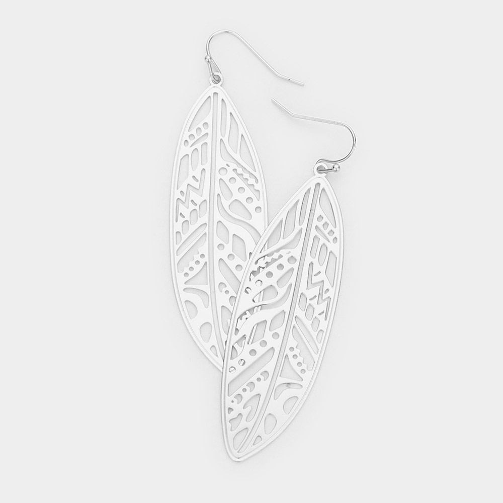 Natural Dipped Filigree Leaf Pendant Long Necklace