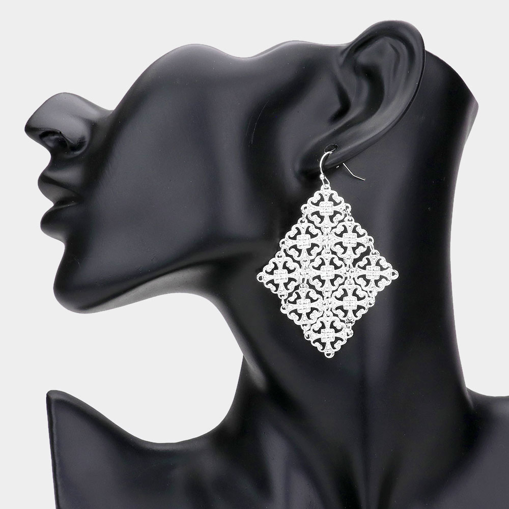Abstract Pattern Teardrop Metal Filigree Dangle Earrings