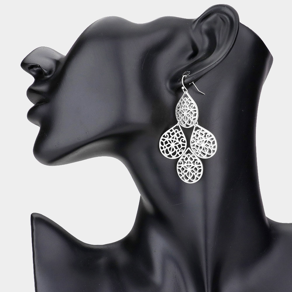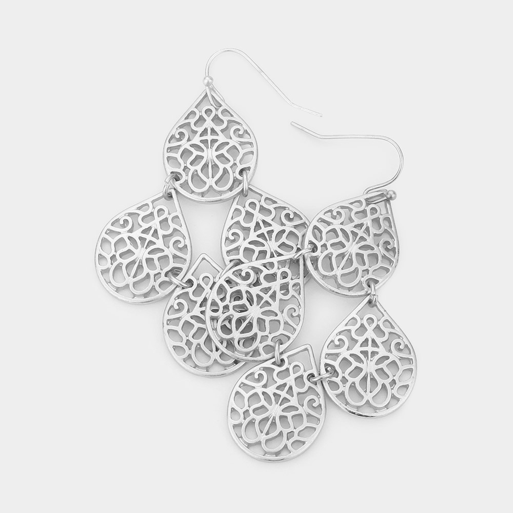 Filigree Metal Teardrop Link Layered Dangle Earrings