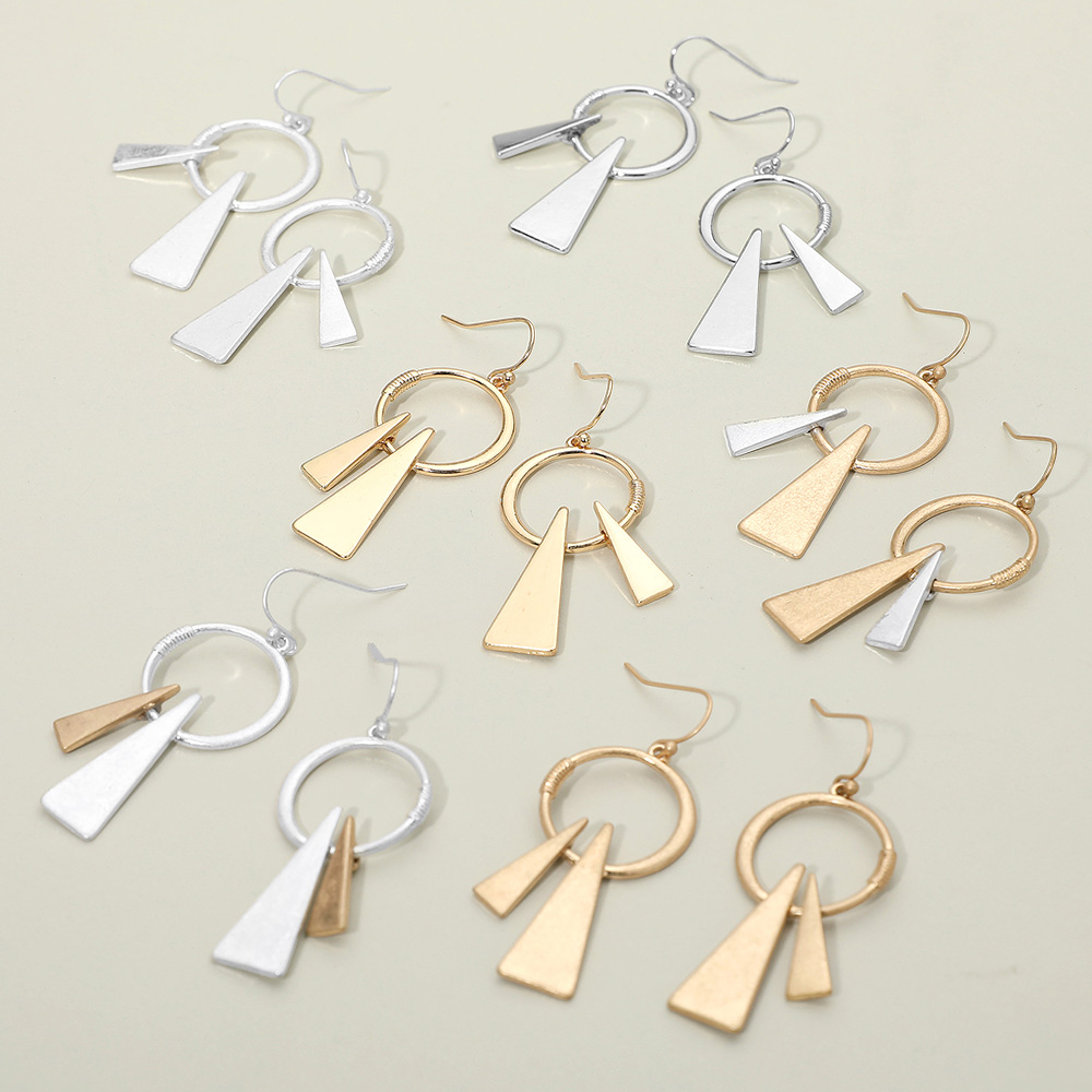 Geometric Metal Circle Triangle Drop Dangle Earrings