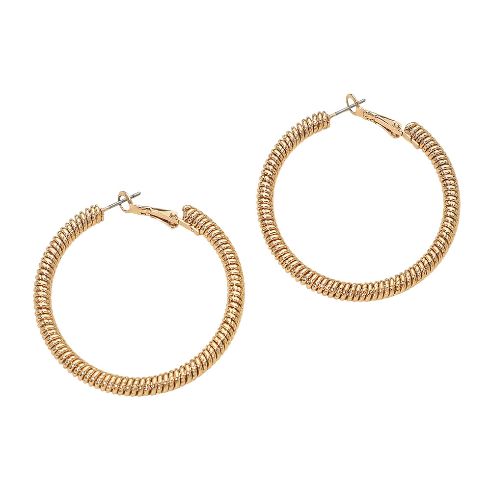 • Trendy coil-texture hoop earrings featuring a spring-inspired wrapped design that adds bold dimension to any look. Lightweight, comfortable, and easy to style for everyday outfits or dressy occasions, with secure latch-back closure for reliable wear.