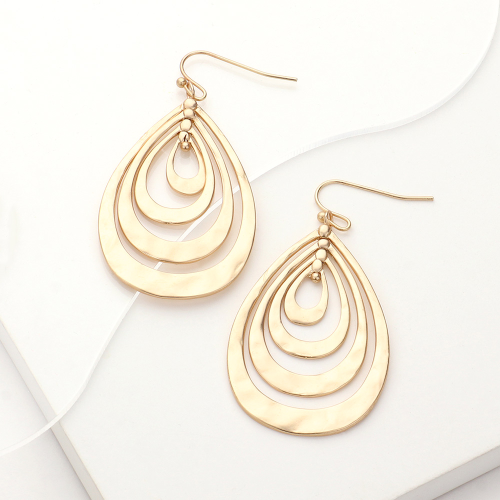 Hammered Metal Concentric Teardrop Dangle Earrings