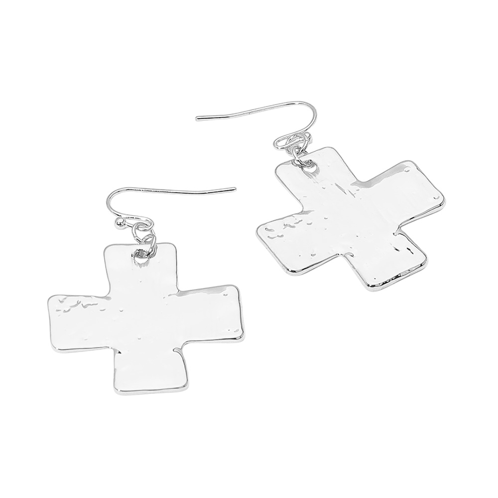 Hammered Metal Cross Dangle Earrings Hammered Metal Cross Dangle Earrings