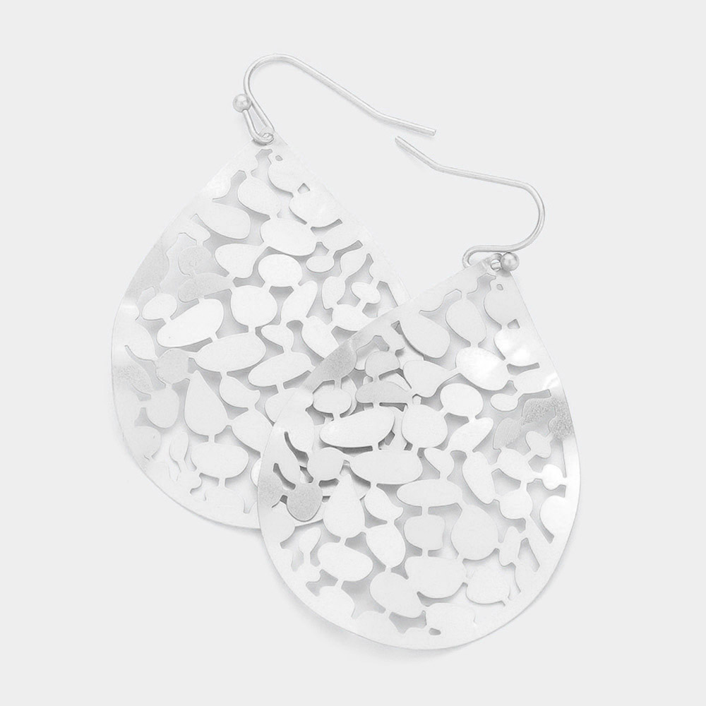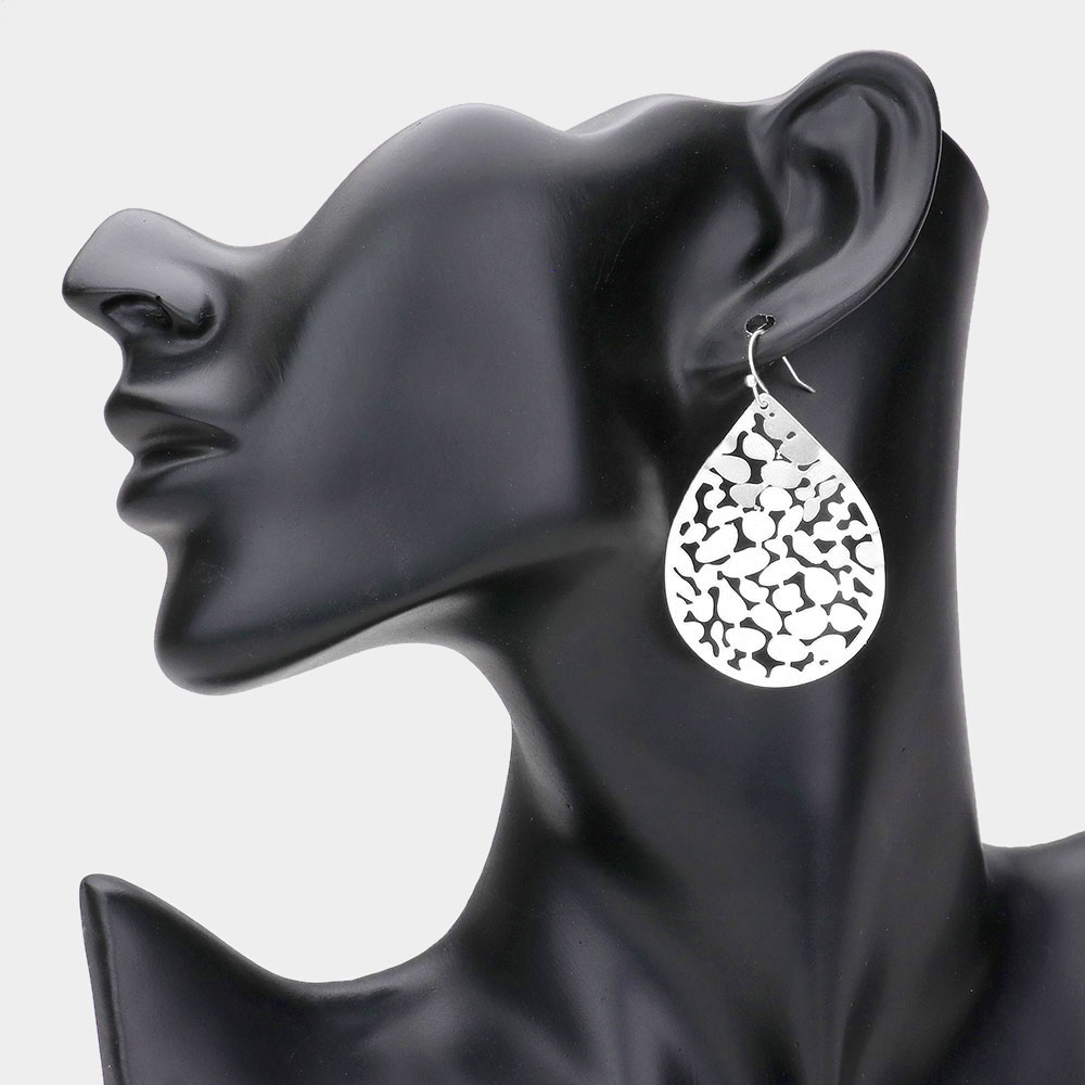 Hammered Metal Cutout Teardrop Earrings