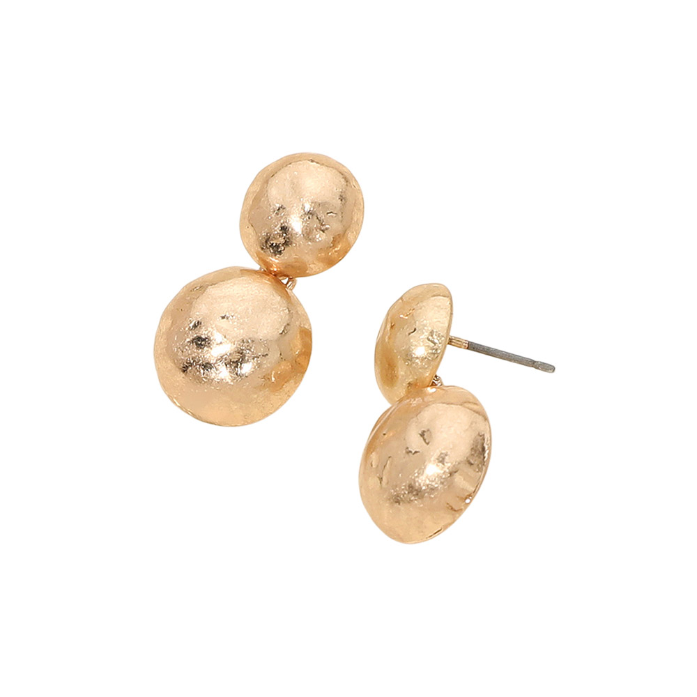 Hammered Metal Double Dome Dangle Earrings