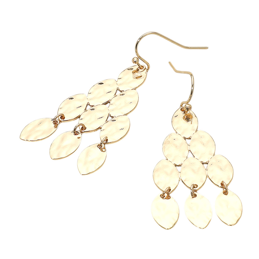 Hammered Metal Tiered Drop Dangle Earrings
