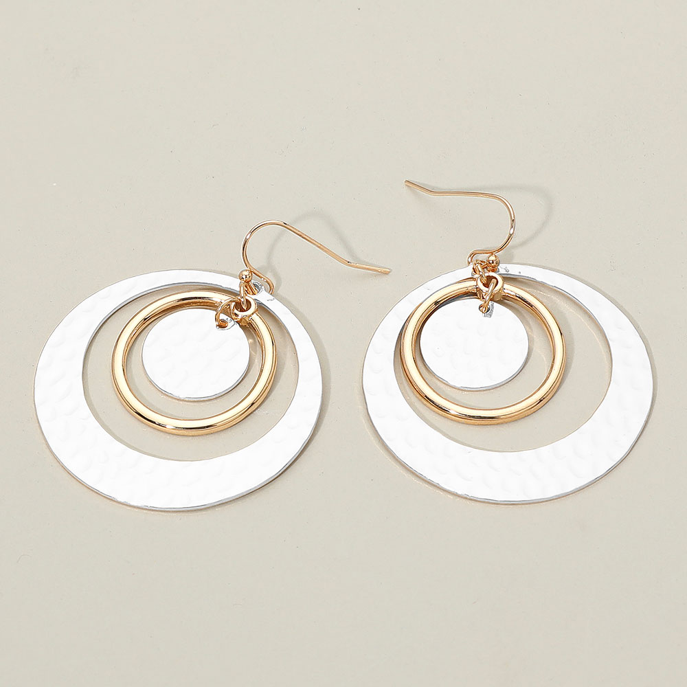 Hammered Metal Triple Circle Dangle Earrings Hammered Metal Triple Circle Dangle Earrings Hammered Metal Triple Circle Dangle Earrings