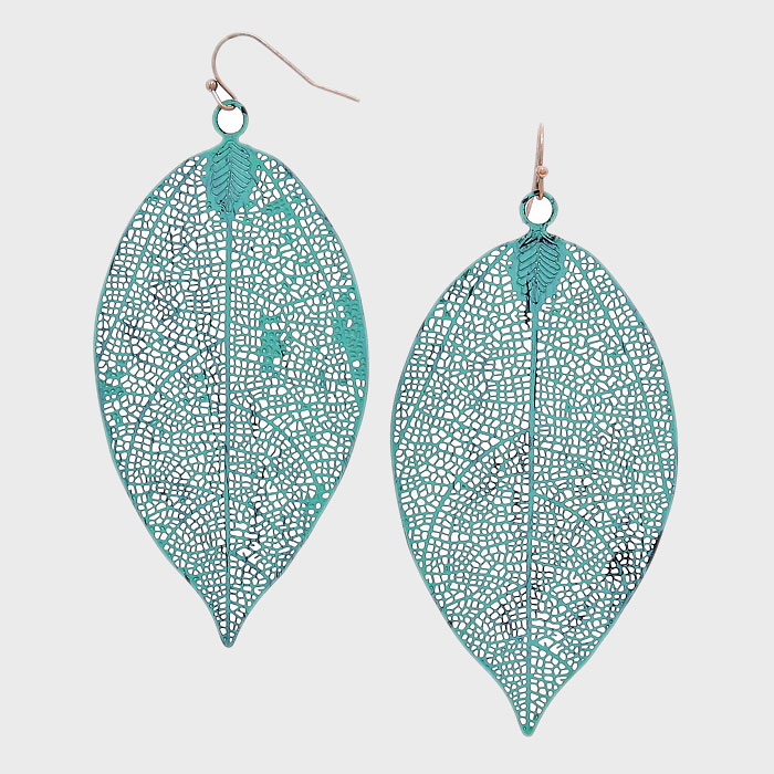 Natural Dipped Filigree Leaf Pendant Long Necklace