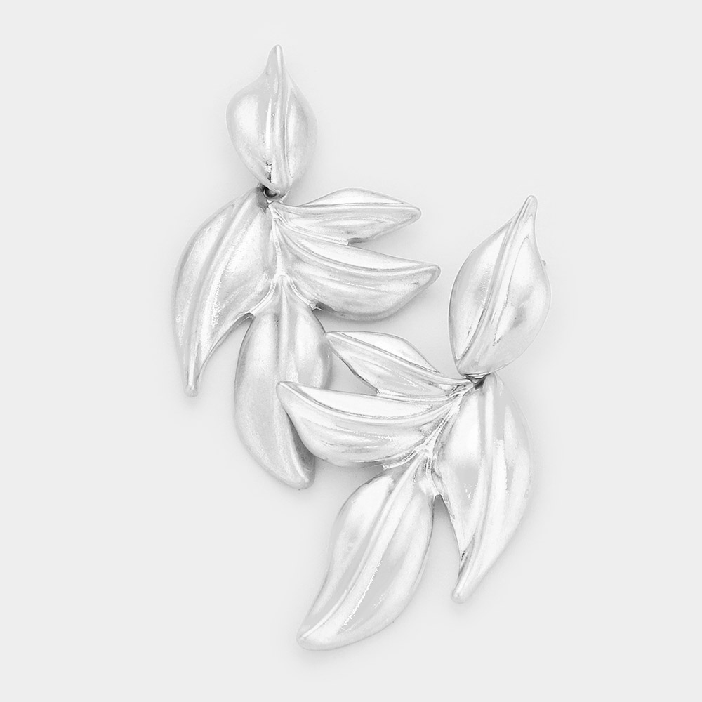 Cut Out Detailed Metal Leaf Dangle Earrings