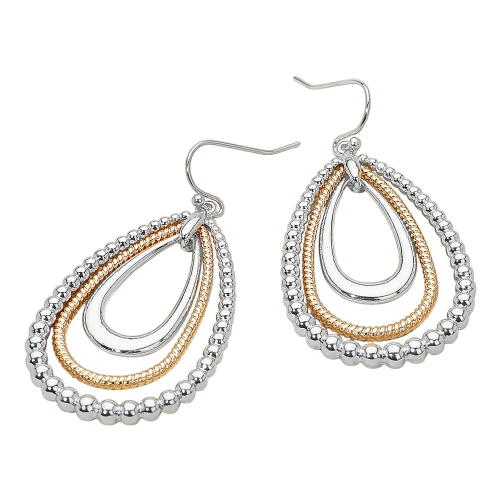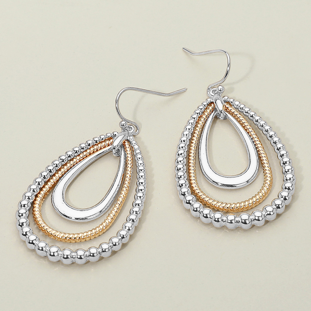 Details • Size : 1.2" X 2.1" • Fish Hook Back • Bold and stylish, these geometric drop earrings feature interlinked open square shapes for a sleek, contemporary look. Lightweight and eye-catching, they’re the perfect accessory to elevate casual or dressy outfits with modern flair. • Lead and Nickel Compliant