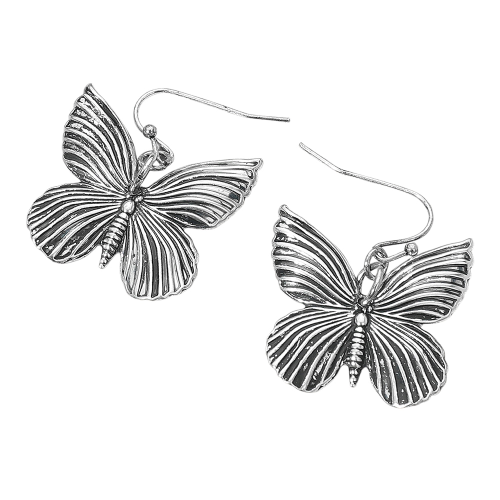 • Add a touch of elegance and whimsy with these butterfly drop earrings featuring beautifully detailed wings and a sculpted finish. Perfect for everyday wear or special occasions, they symbolize transformation and grace while enhancing any outfit with timeless charm.