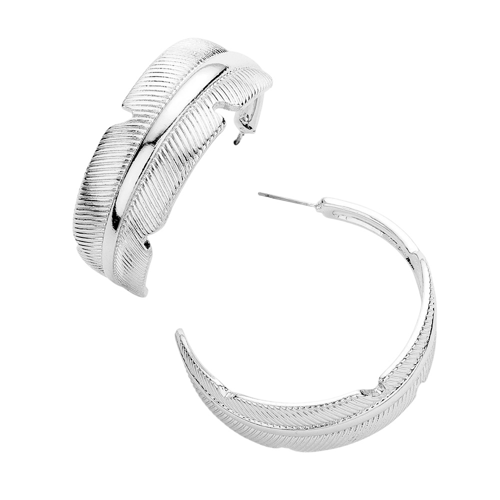 • Elegant feather-inspired hoop earrings featuring detailed texture and curved design. A lightweight, versatile accessory that adds a touch of nature-inspired charm to both casual and formal outfits.