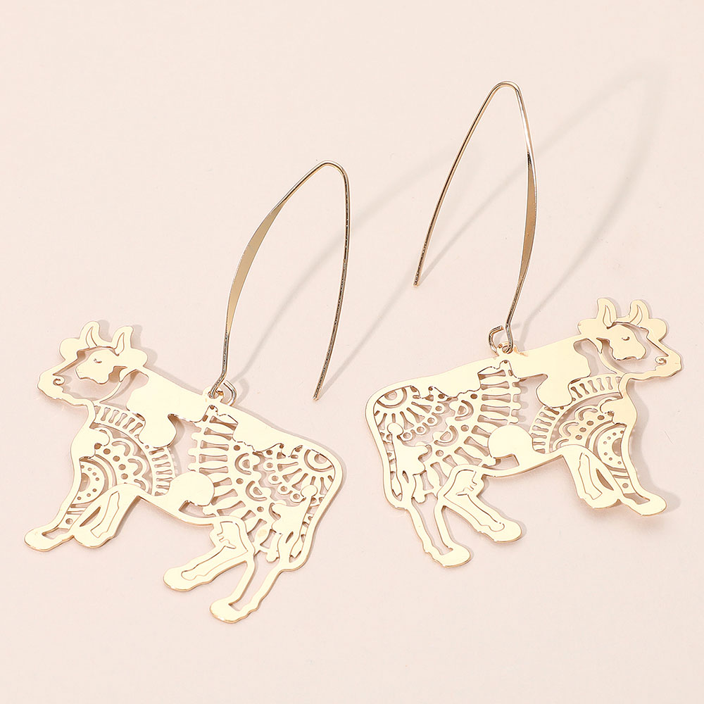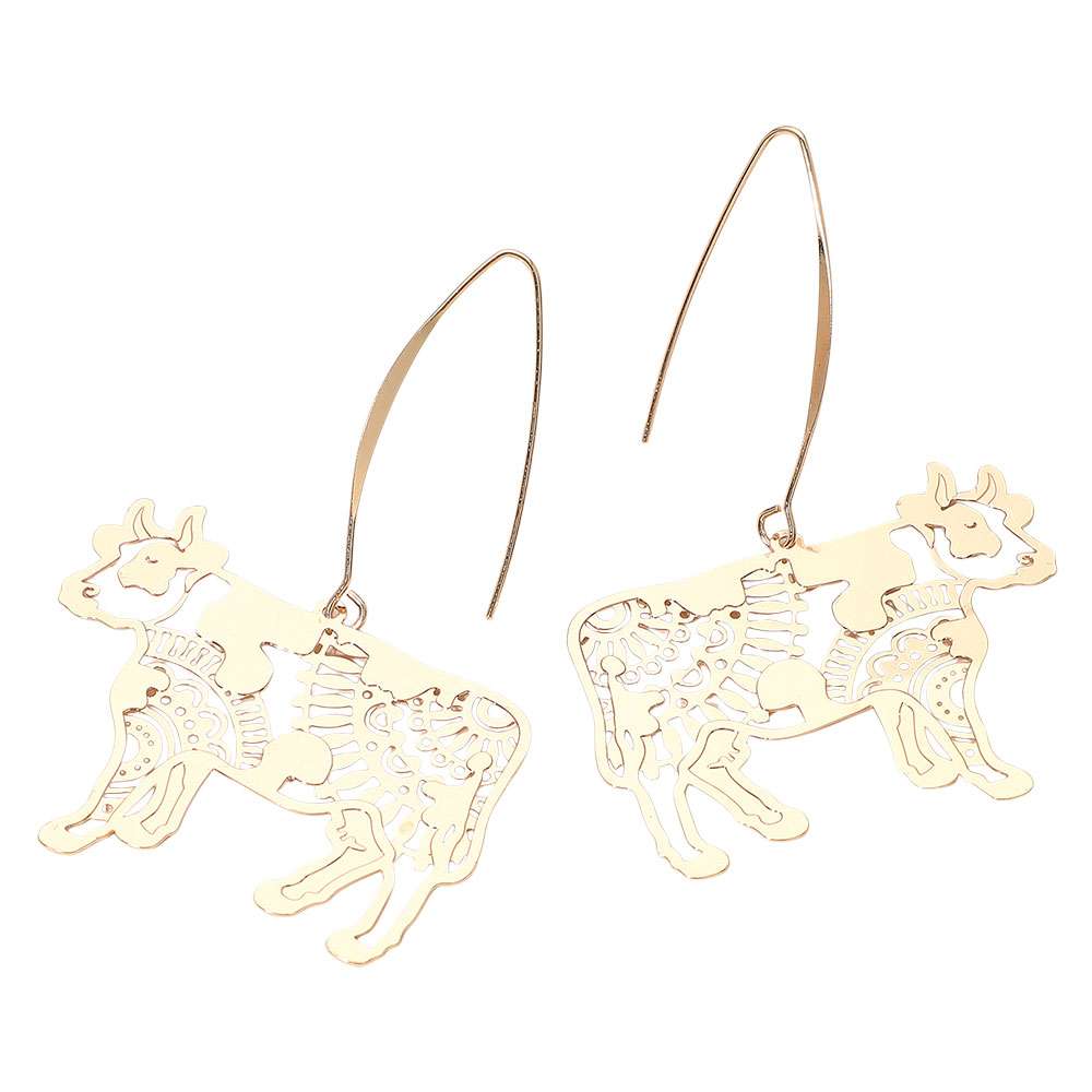 Metal Filigree Cow Dangle Earrings