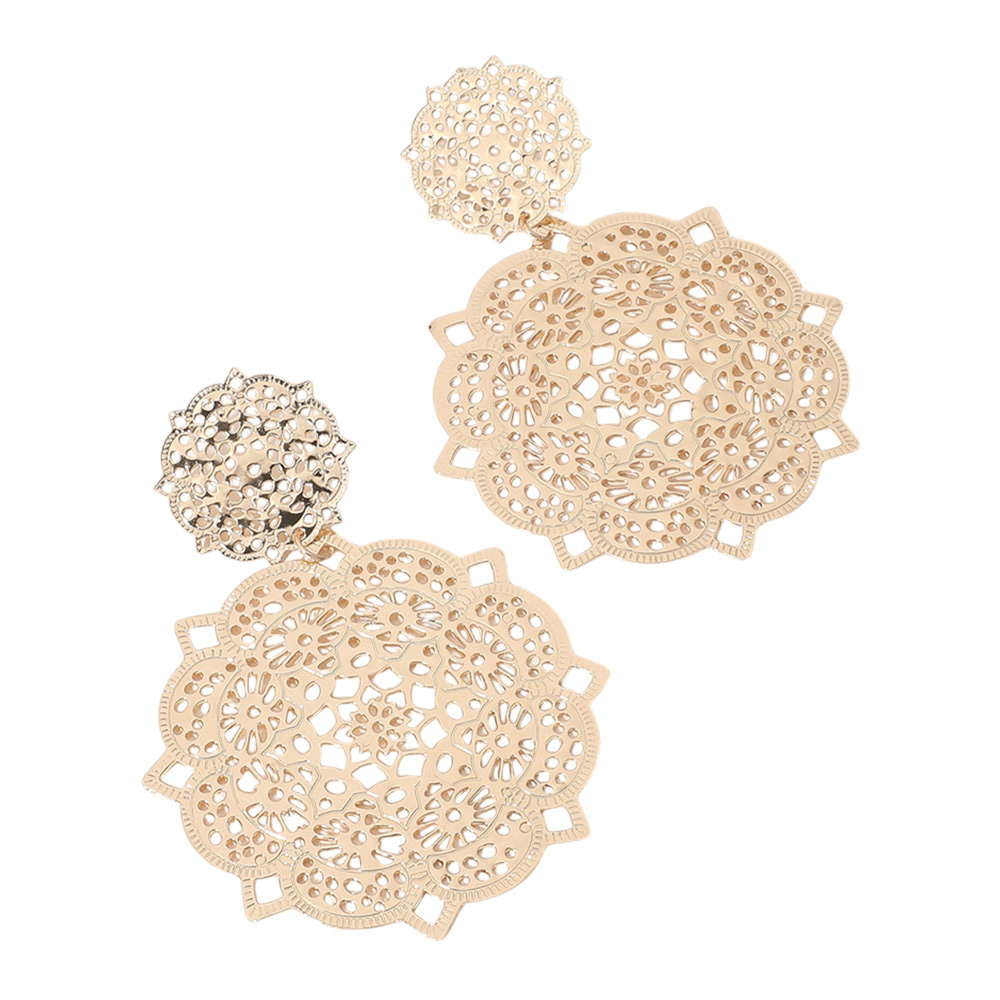 Abstract Pattern Teardrop Metal Filigree Dangle Earrings