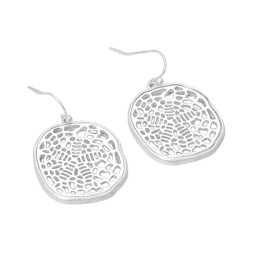 Details • Size : 1.1" X 1.6" • Fish Hook Back • Filigree drop earrings featuring intricate cutout details in a rounded organic shape. Lightweight and stylish, these earrings add a refined yet artistic touch, making them perfect for everyday wear or special occasions. • Lead and Nickel Compliant