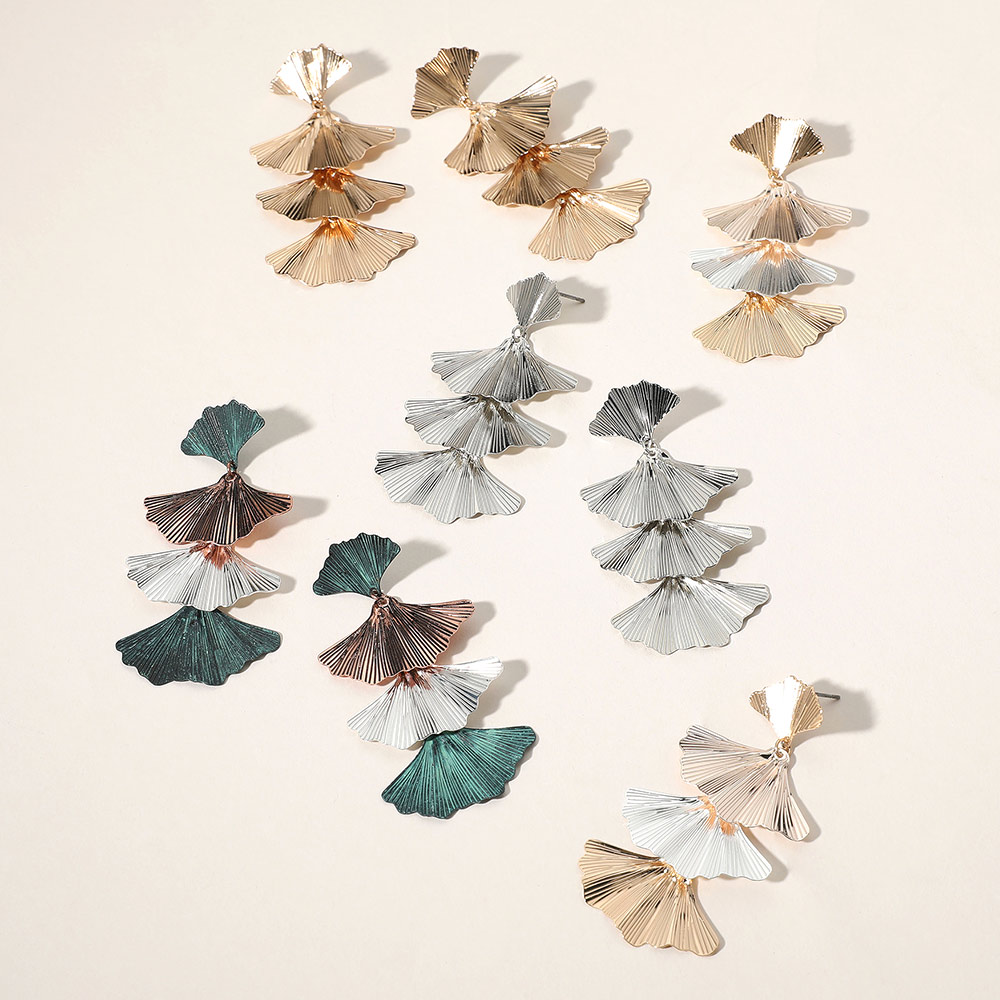 Metal Ginkgo Leaf Link Dropdown Earrings