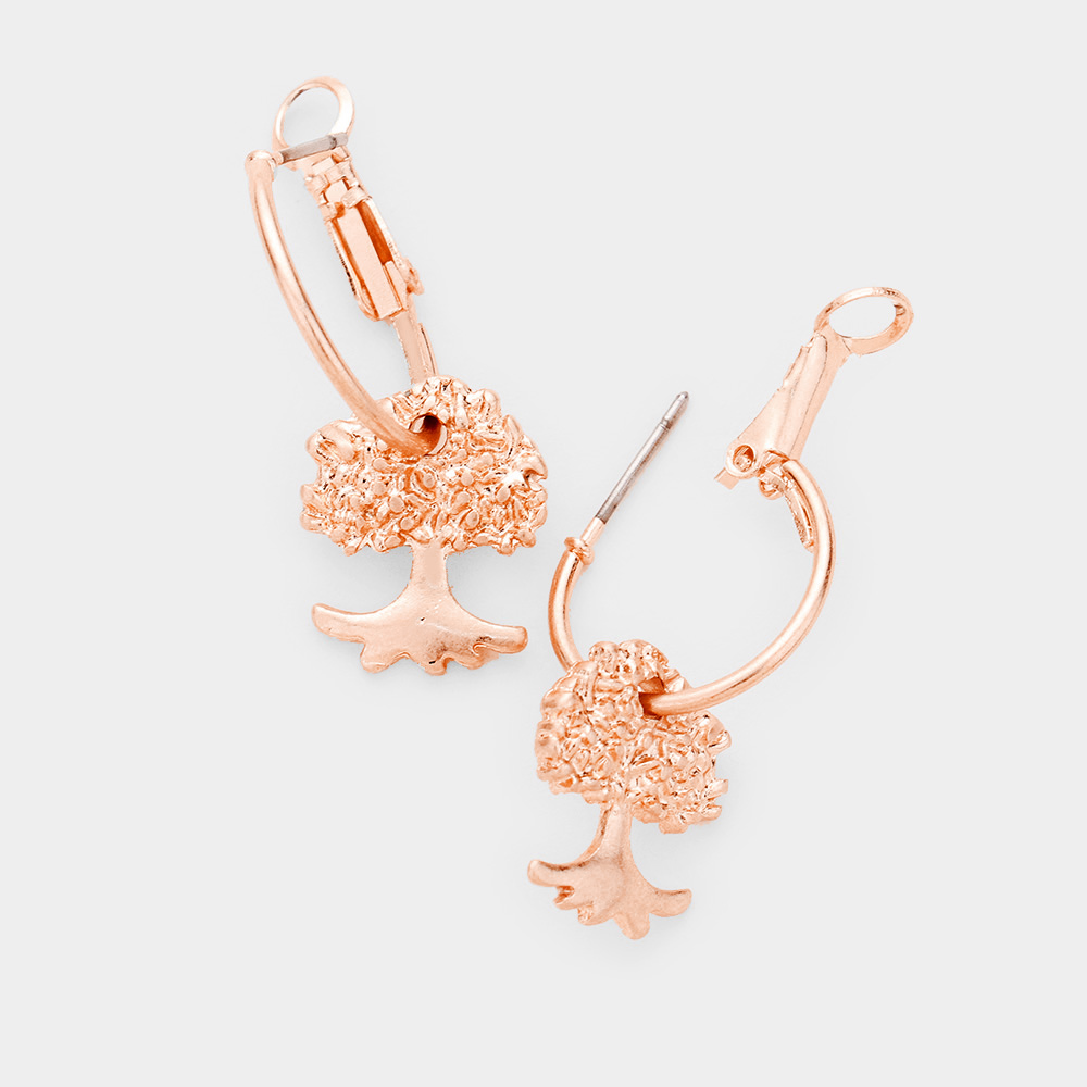 Metal Hoop Tree Dangle Earrings