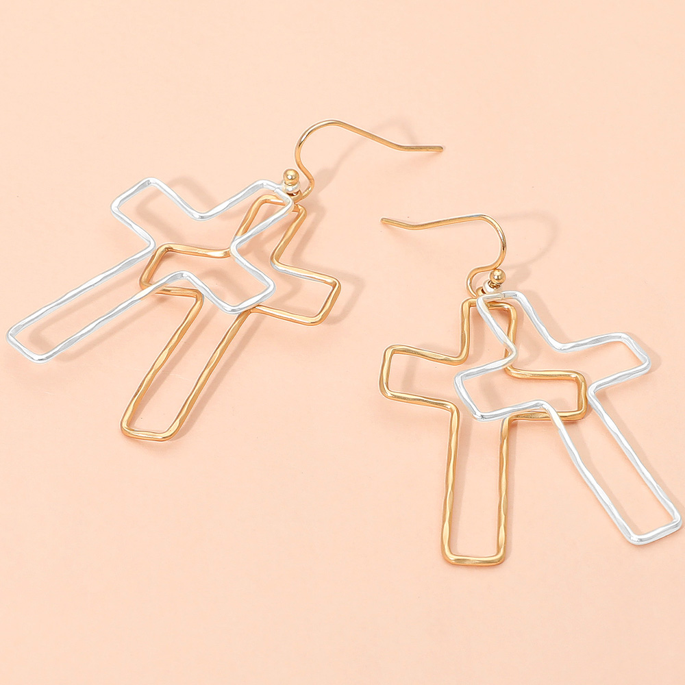 Metal Wire Open Double Cross Dangle Earrings Metal Wire Open Double Cross Dangle Earrings