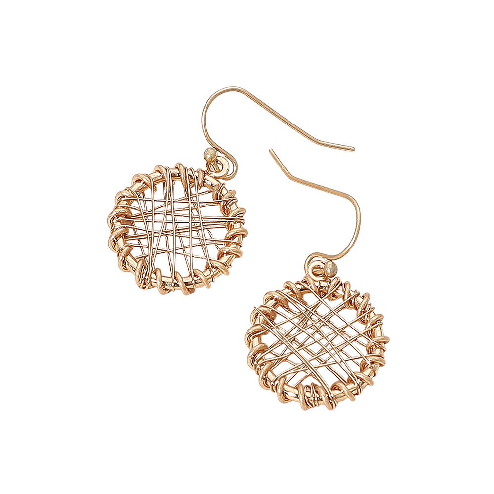 Metal Wire Wrapped Round Drop Dangle Earrings