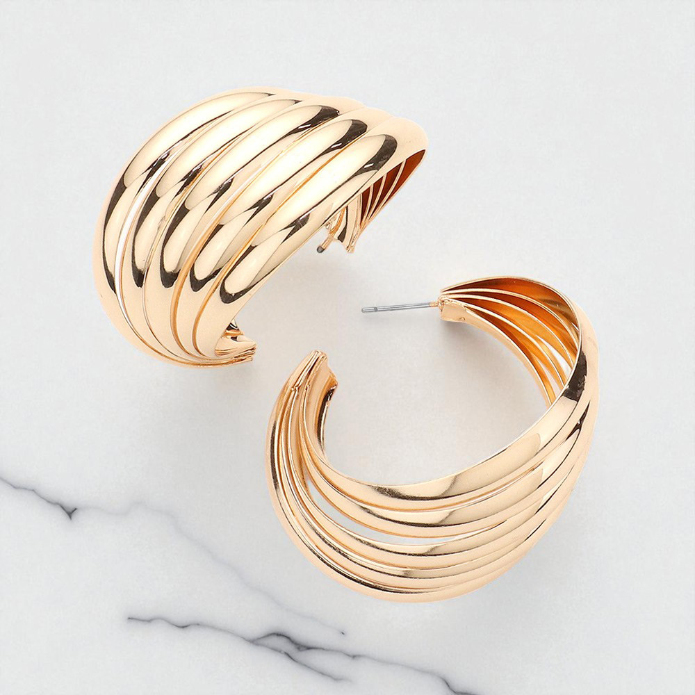 Gold Dipped Triangle CZ Stone Cluster Around Hoop Earrings