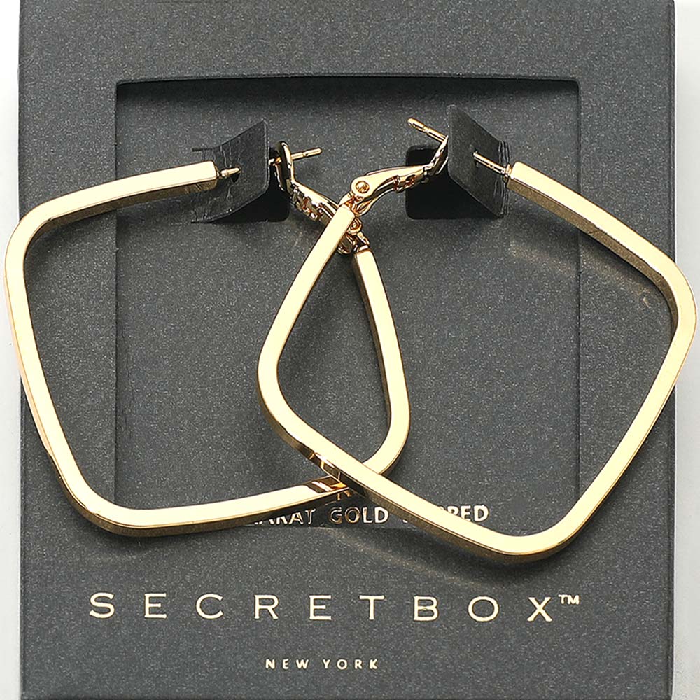 Details • Size : 1.9" X 1.9" • Omega Back • Elevate your style with these geometric hoop earrings featuring a unique open shape design. Lightweight yet bold, they offer a contemporary edge that transitions seamlessly from day to night. Perfect for adding a modern twist to casual or dressy looks. • Gold Dipped