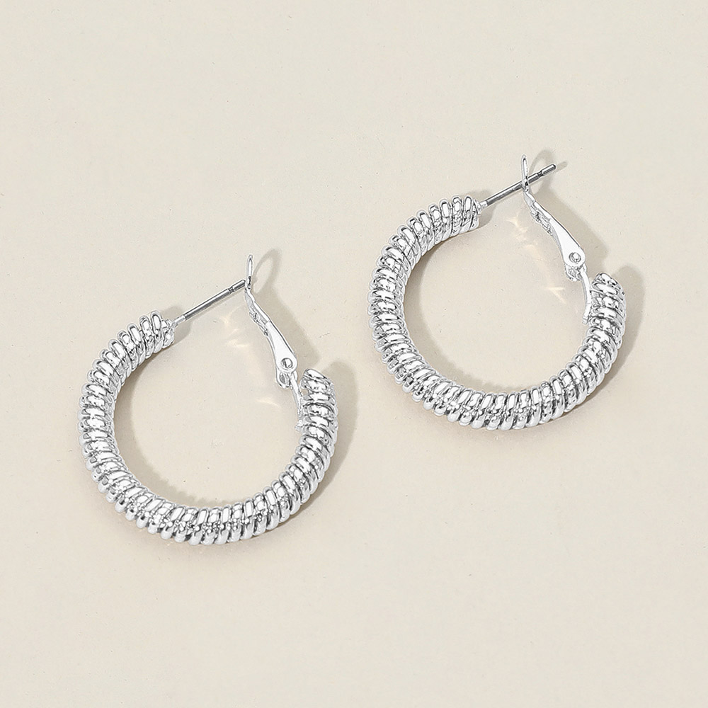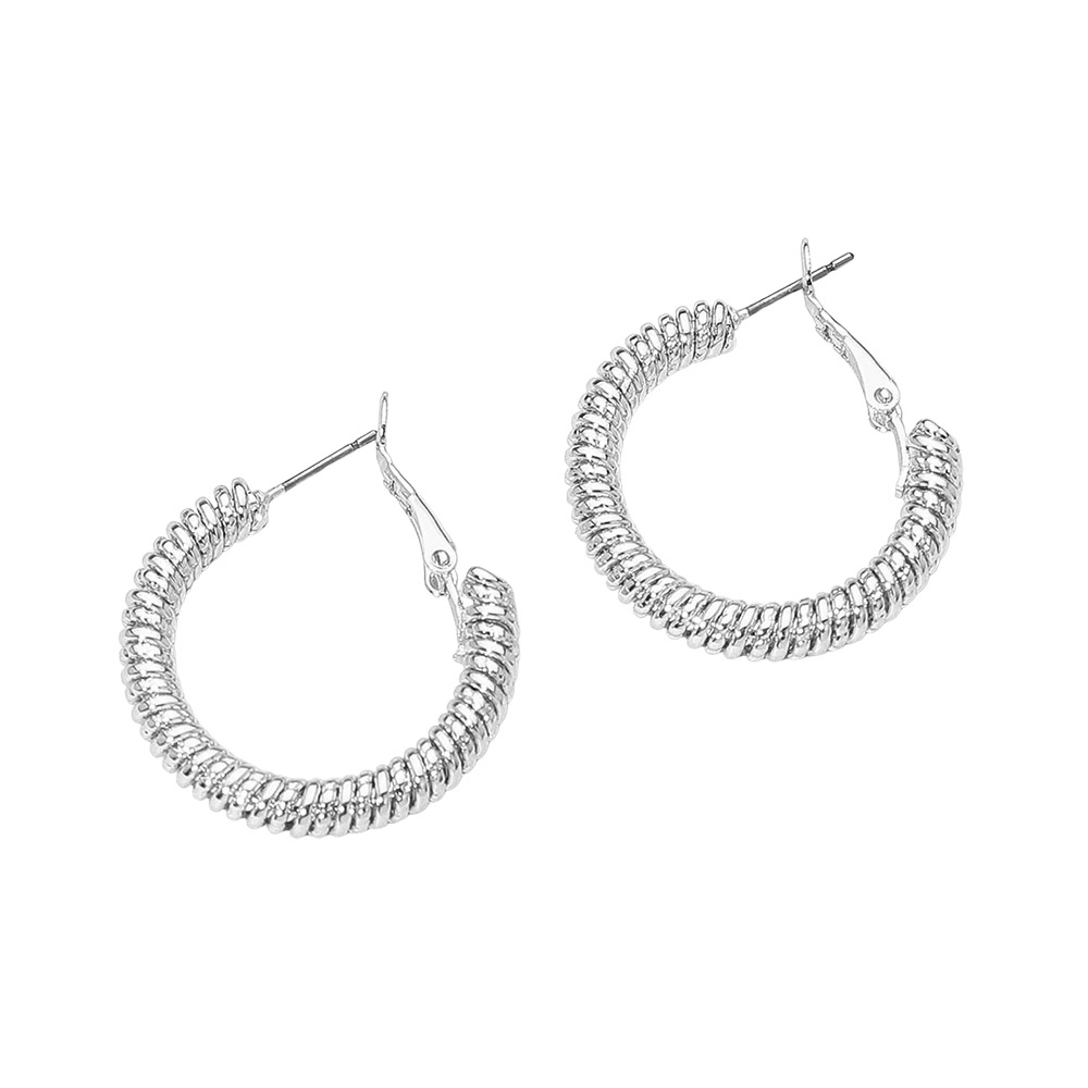 • Stylish coil-texture hoop earrings featuring a bold wrapped design that adds eye-catching dimension to any outfit. Lightweight, comfortable, and perfect for both casual and dressy looks, with secure latch-back closure for easy everyday wear.