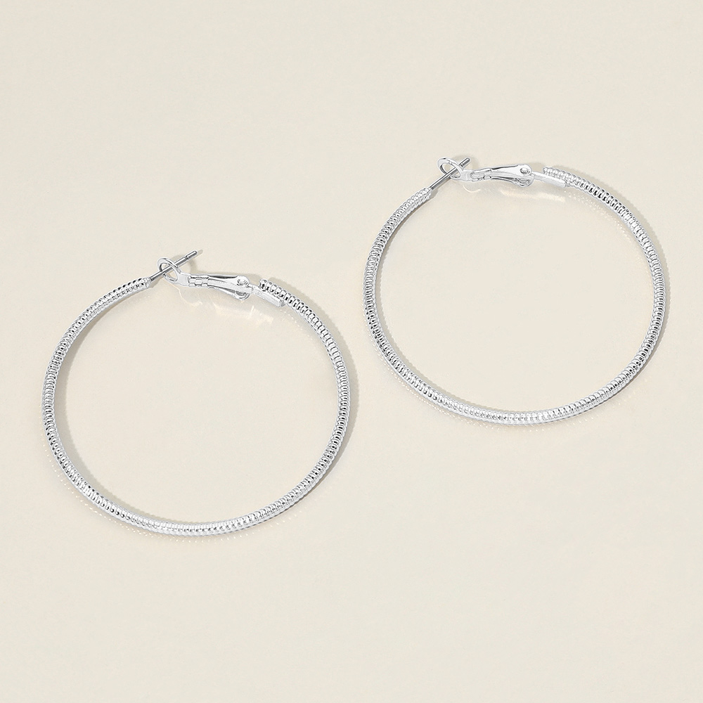 • Stylish large hoop earrings featuring a refined textured finish and a sleek, lightweight silhouette for comfortable all-day wear. A versatile accessory that adds modern elegance to casual looks or enhances evening outfits with minimal polished style.