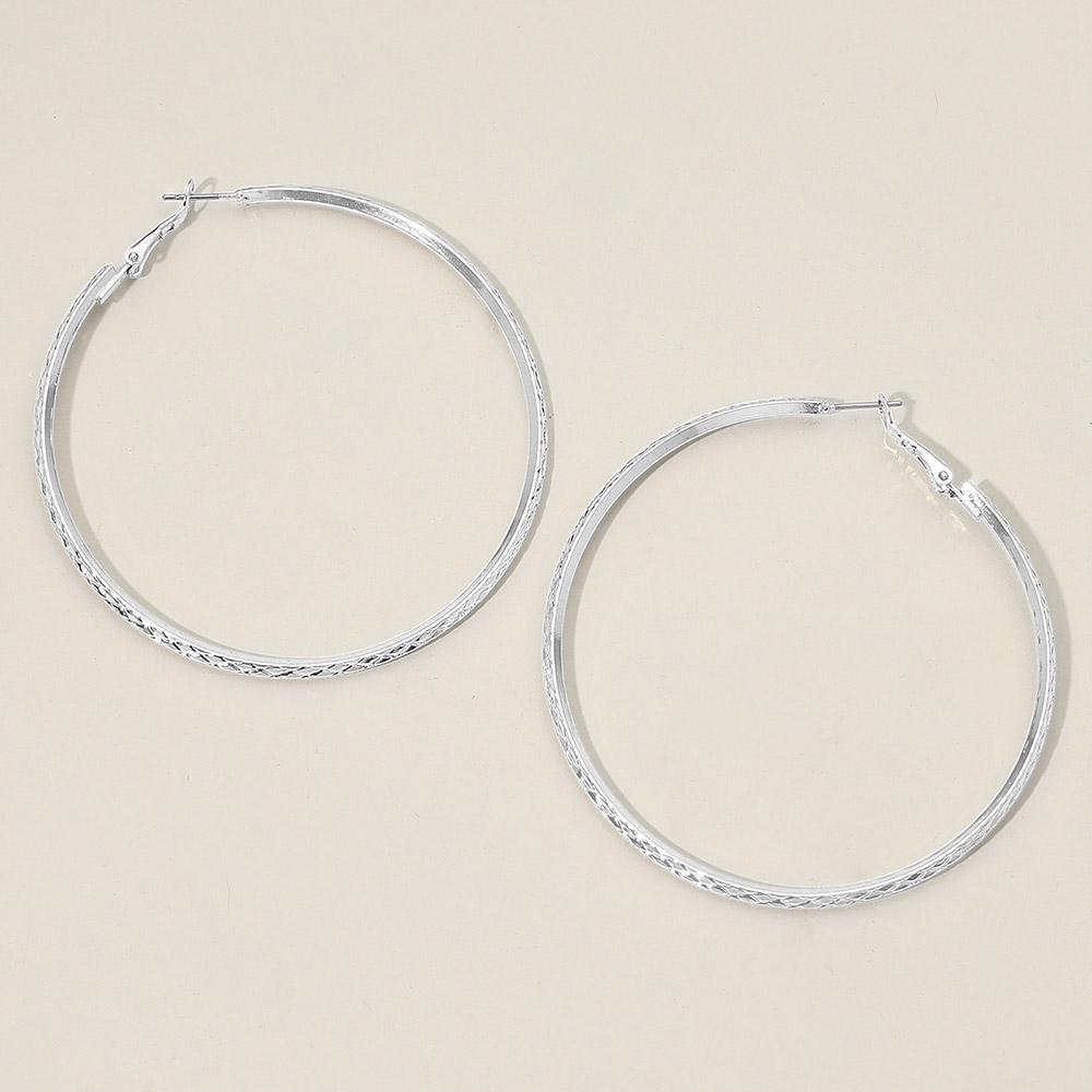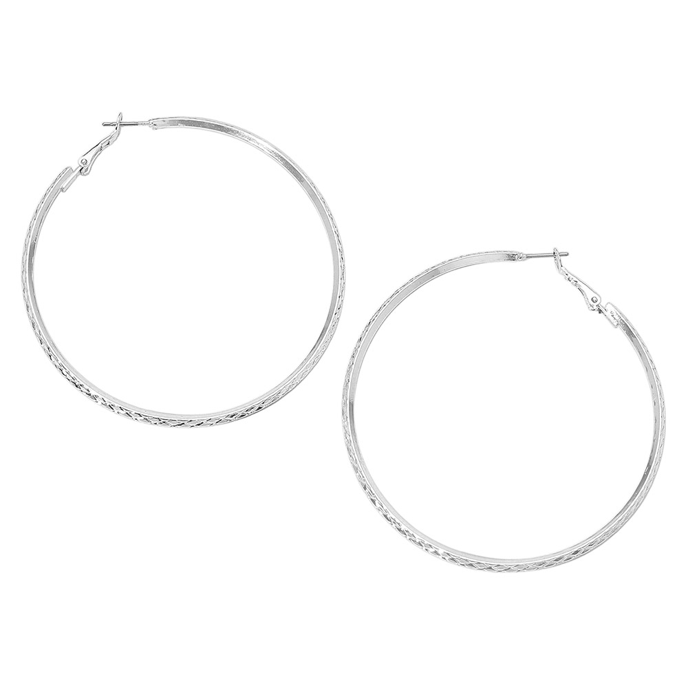 • Large hoop earrings with a slim, textured round design that catches the light from every angle. Lightweight and comfortable for all-day wear, featuring secure latch backs for an effortless statement with casual or dressy outfits.