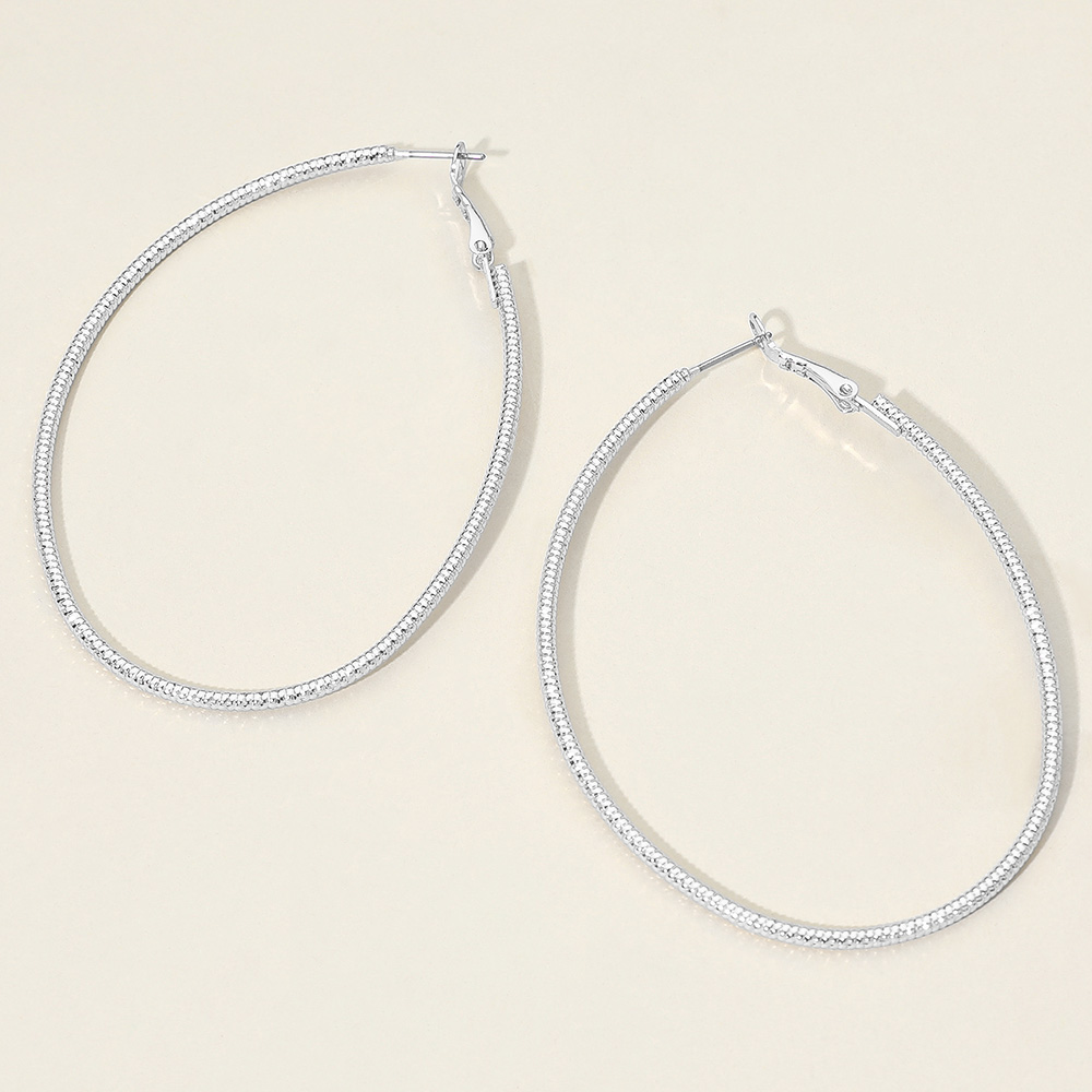 Details • Size : 2" X 3" • Omega Back • Stylish large hoop earrings featuring a refined textured finish and a slim, lightweight silhouette for comfortable all-day wear. A versatile accessory that adds modern elegance to casual outfits or enhances evening looks with a clean, polished style. • Sterling Silver Dipped • Lead and Nickel Compliant