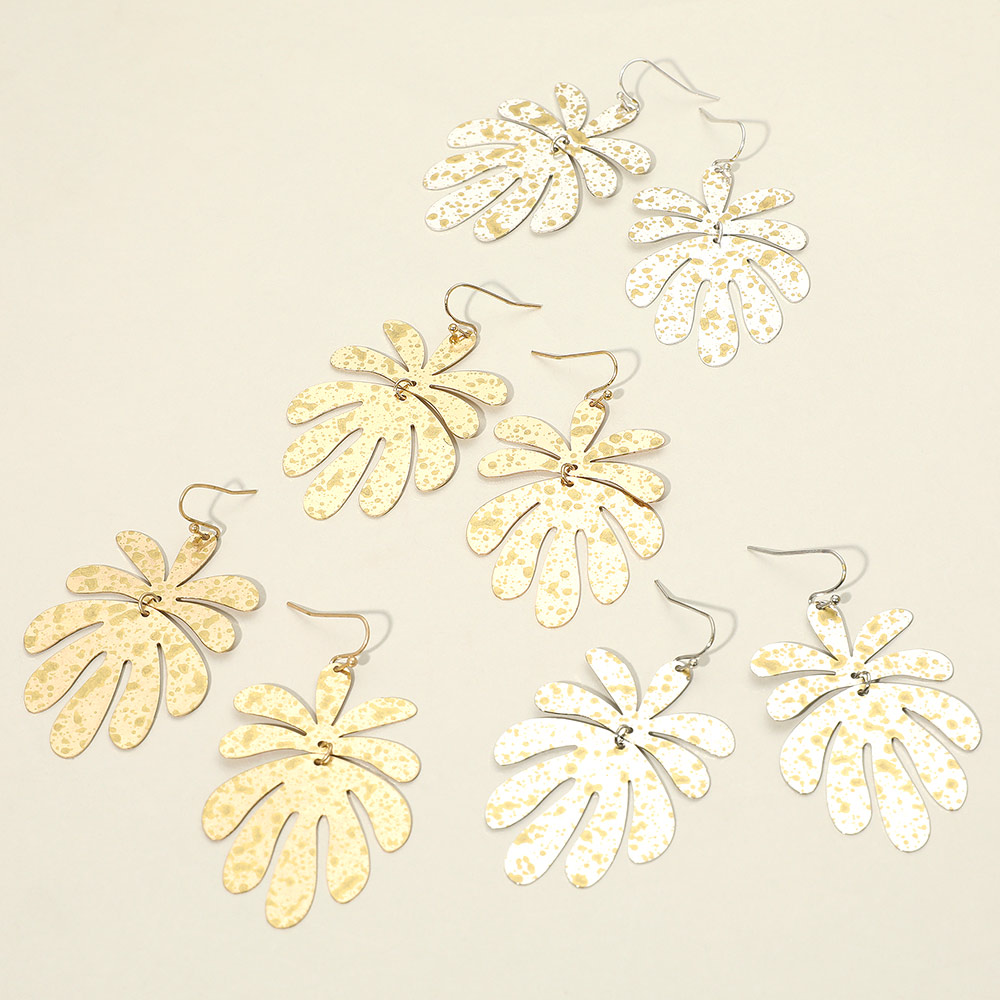 Details • Size : 1.4" X 2.5" • Fish Hook Back • Statement dangle earrings shaped like abstract palm leaves with a hammered texture finish. Lightweight and eye-catching, perfect for adding a bold touch to tropical, casual, or vacation-inspired outfits. • Lead and Nickel Compliant
