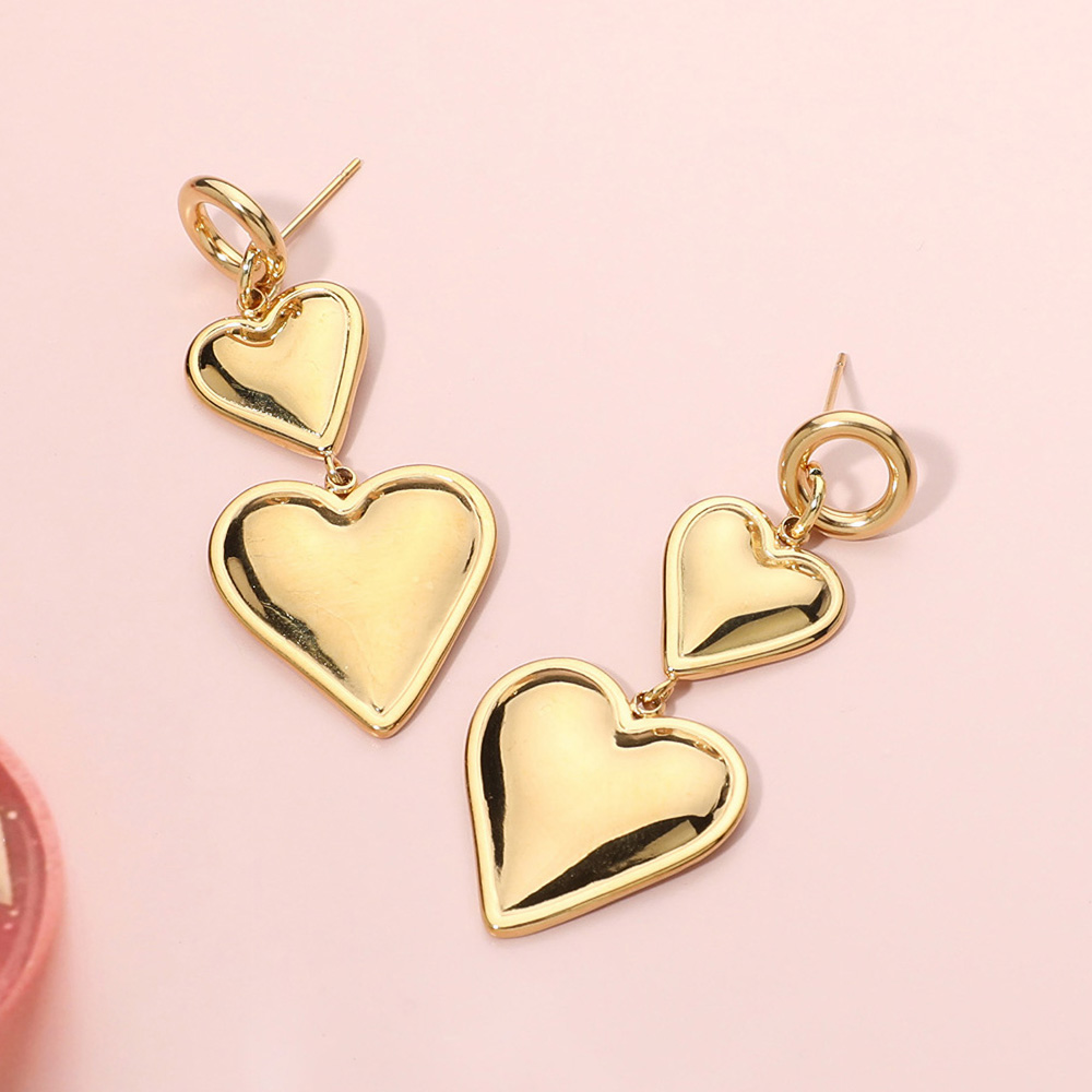• Elegant double heart drop earrings featuring a sleek, polished finish with a modern linked design. Lightweight and stylish, perfect for adding a romantic touch to everyday wear or special occasions.