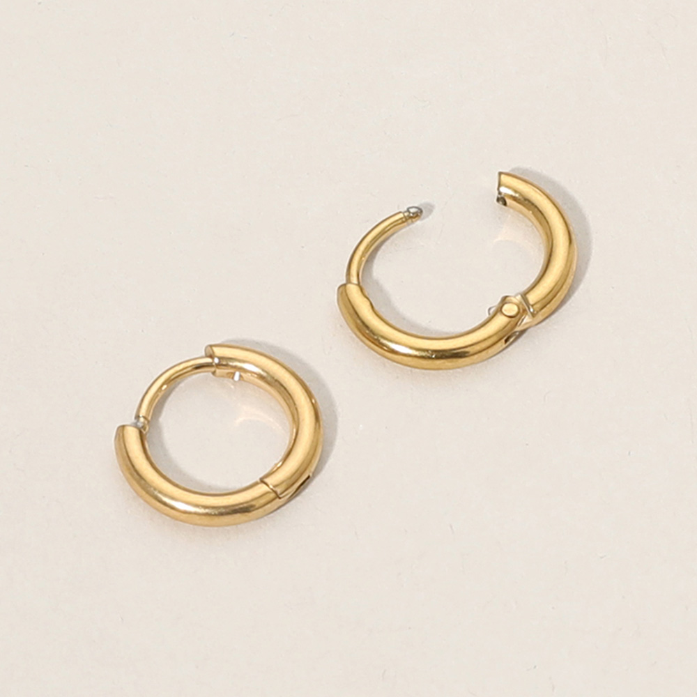 Details • Size : 0.5" X 0.4" • Huggie Back • Elegant stainless steel small hoop earrings designed for everyday wear. Hypoallergenic and tarnish-resistant, offering lasting shine and comfort in a versatile, minimalist style. • Hypoallergenic • Stainless Steel
