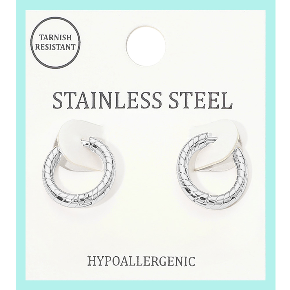 Stainless Steel Textured Mini Huggie Hoop Earrings