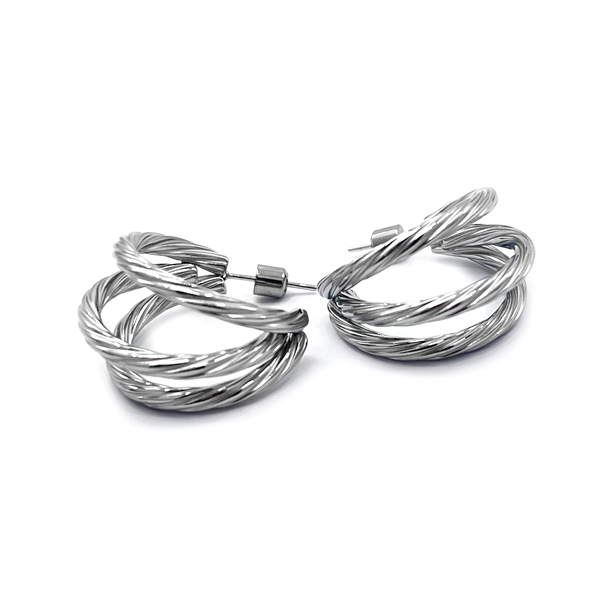 18K Gold Dipped Stainless Steel Textured Split Hoop Earrings