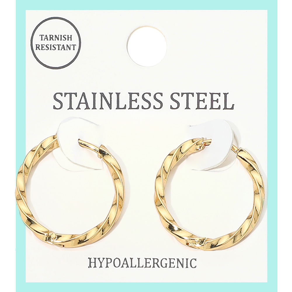 Stainless Steel Twisted Huggie Hoop Earrings