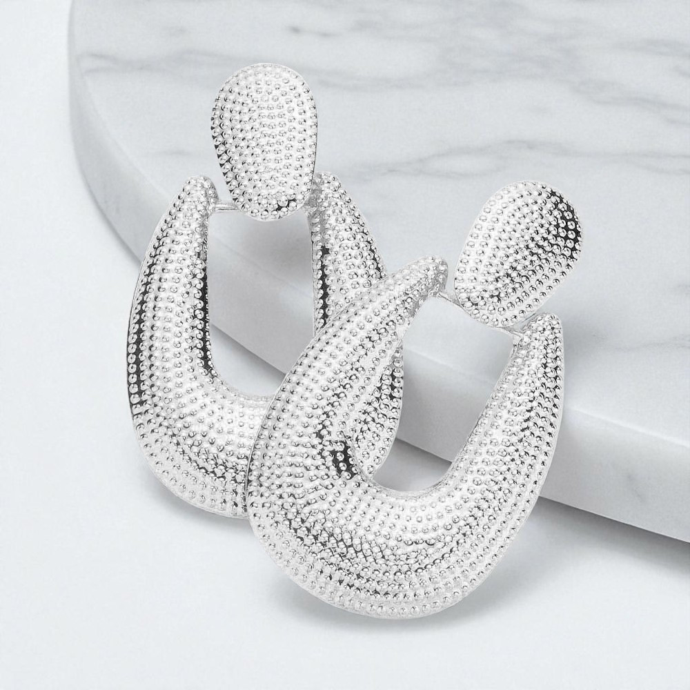 White Gold Dipped Cubic Zirconia Floral Sprout Drop Earrings