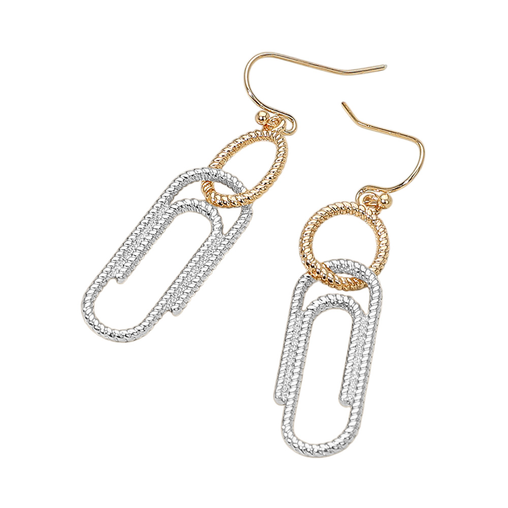 Textured Metal Geometric Link Drop Dangle Earrings