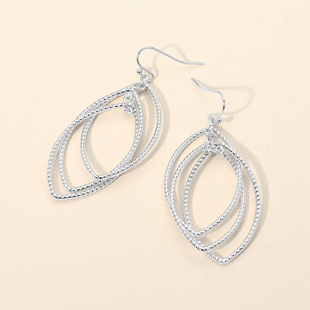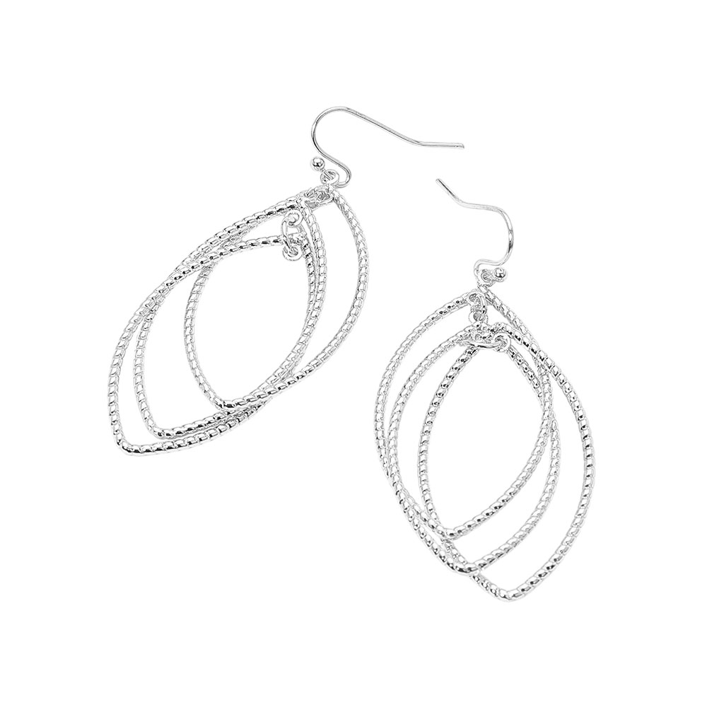 Details • Size : 1" X 2.5" • Fish Hook Back • Elevate your look with these layered marquise drop earrings featuring multiple interlocking textured loops that create graceful movement and shine. Lightweight yet eye-catching, these earrings bring a modern twist to classic elegance, perfect for both day and evening wear. • Lead and Nickel Compliant